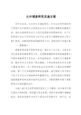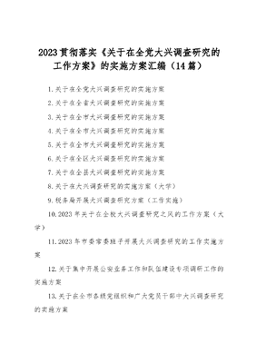 (14篇)贯彻落实《关于在全党大兴调查研究的工作方案》的实施方案汇编.docx