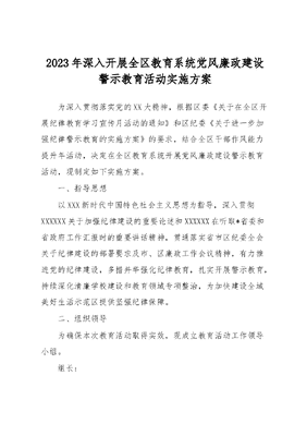 2023年深入开展全区教育系统党风廉政建设警示教育活动实施方案.docx