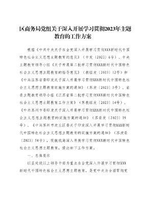 区商务局党组 关于深入开展学习贯彻2023年主题教育的工作方案.docx