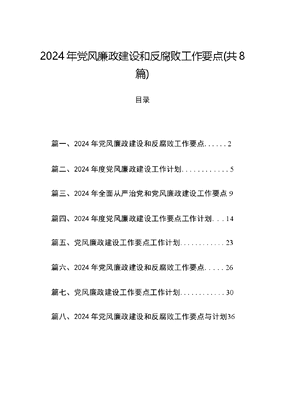 (8篇)2024年度党风廉政建设工作要点工作计划.docx