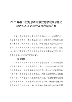 全市教育系统开展教育领域群众身边腐败和不正之风专项整治实施方案.docx