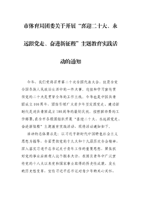 市体育局团委关于开展“喜迎二十大、永远跟党走、奋进新征程”主题教育实践活动的通知.docx