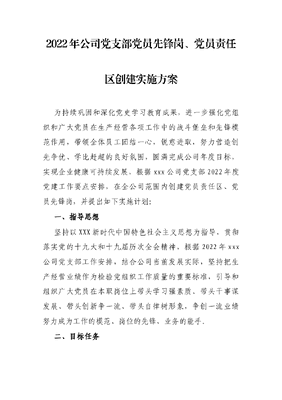 2022年公司党支部党员先锋岗、党员责任区创建实施方案.docx