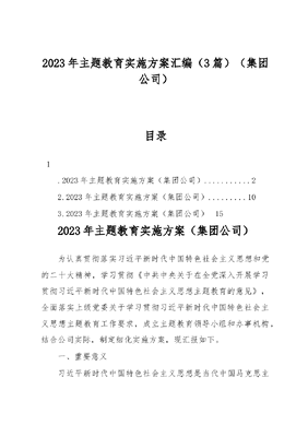 (3篇)2023年主题教育实施方案汇编(集团公司).docx