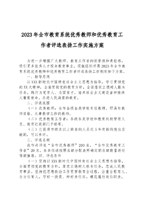2023年全市教育系统优秀教师和优秀教育工作者评选表扬工作实施方案.docx