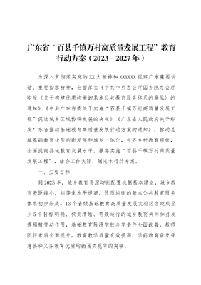 广东省“百县千镇万村高质量发展工程”教育行动方案(2023—2027年).docx