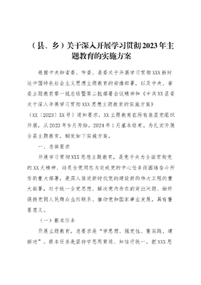 (县、乡)深入开展学习贯彻2023年主题教育的实施方案.docx