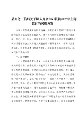 县商务工信局关于深入开展学习贯彻2023年主题教育的实施方案.docx