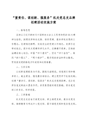 “重责任、谋创新、强服务”机关党总支品牌创建活动实施方案.docx