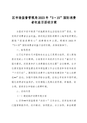 区市场监督管理局2023年“3·15”国际消费者权益日活动方案.docx