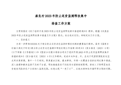 麻良村2023年防止返贫监测帮扶集中排查工作方案(定).docx