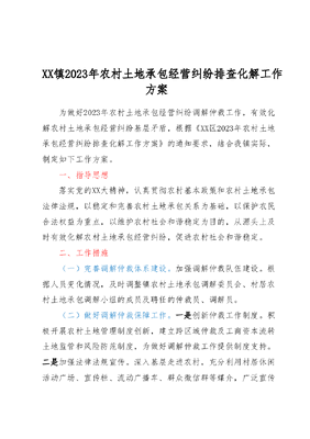 XX镇2023年农村土地承包经营纠纷排查化解工作方案.docx