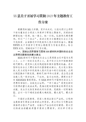 XX县关于开展学习贯彻2023年主题教育工作方案.docx