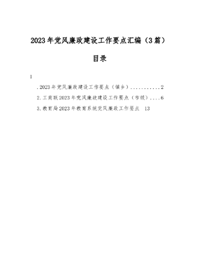 (3篇)2023年党风廉政建设工作要点汇编.docx