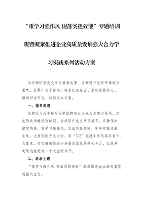 “重学习强作风 促落实提效能”专题培训班暨凝聚推进企业高质量发展强大合力学习实践系列活动方案.docx