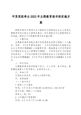 市某党组举办2023年主题教育读书班实施方案.docx