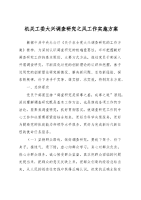 机关工委大兴调查研究之风工作实施方案.docx