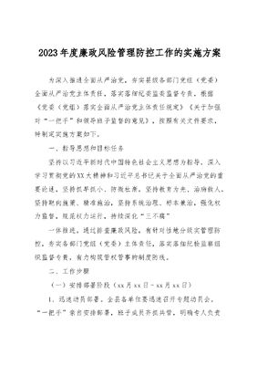 2023年度廉政风险管理防控工作的实施方案.docx