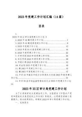 (14篇)2023年党建工作计划汇编.docx