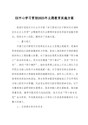 XX中心学习贯彻2023年主题教育实施方案.docx
