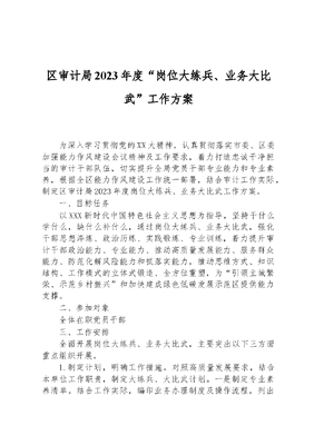 区审计局2023年度“岗位大练兵、业务大比武”工作方案.docx