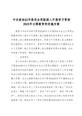 中共政协XX市委员会党组深入开展学习贯彻2023年主题教育的实施方案.docx