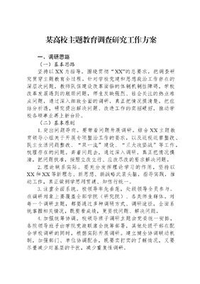 某高校主题教育调查研究工作方案.docx