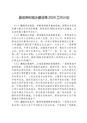 县住房和城乡建设局2024工作计划.docx