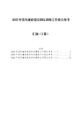 (3篇)2022年党风廉政建设和反腐败工作要点汇编.docx