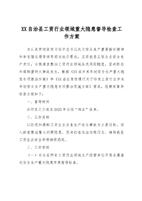 XX自治县工贸行业领域重大隐患督导检查工作方案.docx