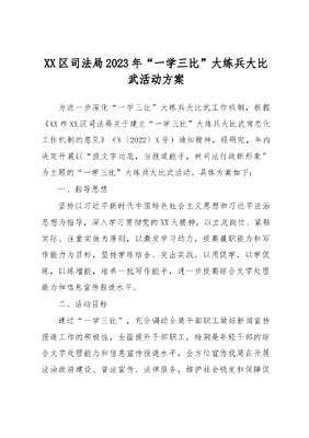 XX区司法局 2023年“一学三比”大练兵大比武活动方案.docx