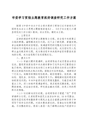 市委学习贯彻主题教育抓好调查研究工作方案.docx