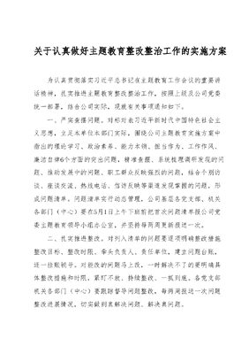 关于认真做好主题教育整改整治工作的实施方案.docx