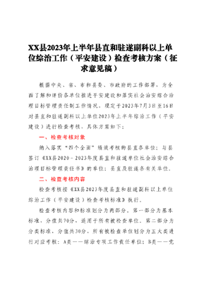 XX县2023年上半年县直和驻遂副科以上单位综治工作(平安建设)检查考核方案 (征求意见稿).docx
