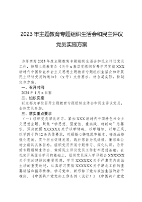 2023年主题教育专题组织生活会和民主评议党员实施方案.docx