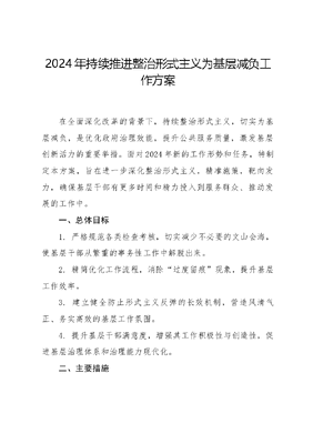 2024年持续推进整治形式主义为基层减负工作方案.docx