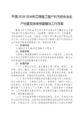 开展2024年水利工程复工复产和汛前安全生产检查及隐患排查整治工作方案.docx
