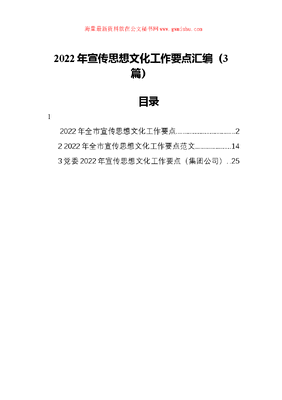 (3篇)2022年宣传思想文化工作要点汇编.docx