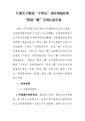 X镇关于推进“十四五”开好局起好步“四送一服”专项行动方案.docx