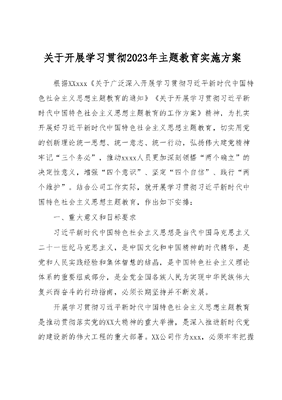 关于开展学习贯彻2023年主题教育实施方案.docx