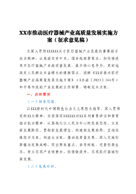 XX市推动医疗器械产业高质量发展实施方案(征求意见稿).docx