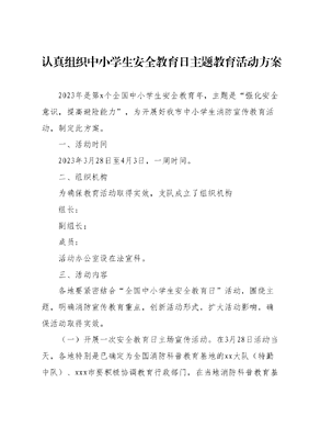 认真组织中小学生安全教育日主题教育活动方案.docx