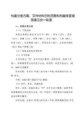 机关档案分类方案、文件材料归档范围和档案保管期限表三合一制度.docx