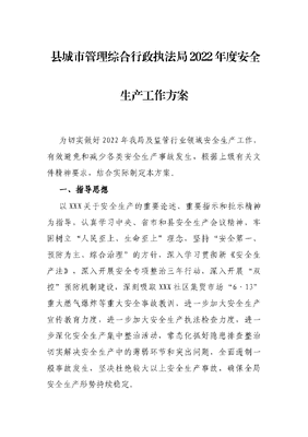 县城市管理综合行政执法局2022年度安全生产工作方案.docx