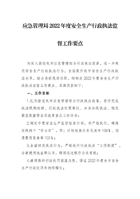 应急管理局2022年度安全生产行政执法监督工作要点.docx