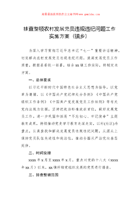 排查整顿农村发展党员违规违纪问题工作实施方案(镇乡).docx