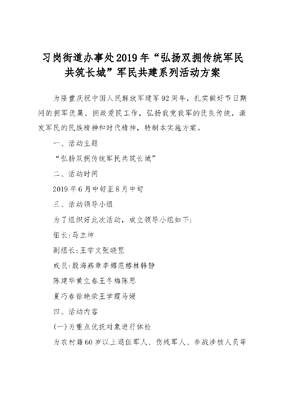 习岗街道办事处2019年“弘扬双拥传统_军民共筑长城”军民共建系列活动方案.docx