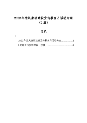 (2篇)2022年党风廉政建设宣传教育月活动方案.docx