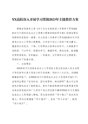 XX高校深入开展学习贯彻2023年主题教育方案.docx