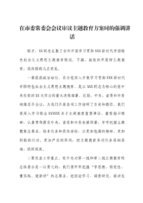 在市委常委会会议审议主题教育方案时的强调讲话.docx